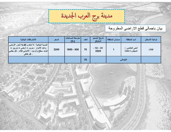ويبلغ مقدم الحجز لقطع الأراضي 350 ألف جنيه،والتخصيص بنظام أسبقية الحجز الإلكتروني (online) عبر موقع حجز بنك التعمير والاسكان.