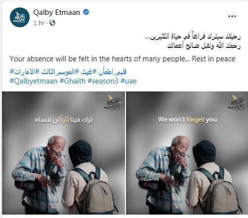 وكتب برنامج "قلبي اطمأن" تدوينة على الفيس بوك "رحيلك سيترك فراغاً في حياة الكثيرين... رحمك الله وتقبل صالح أعمالك"