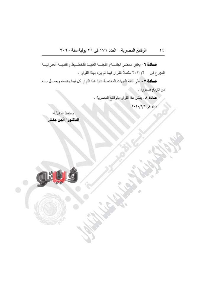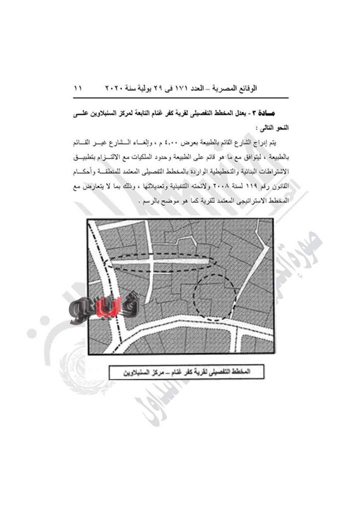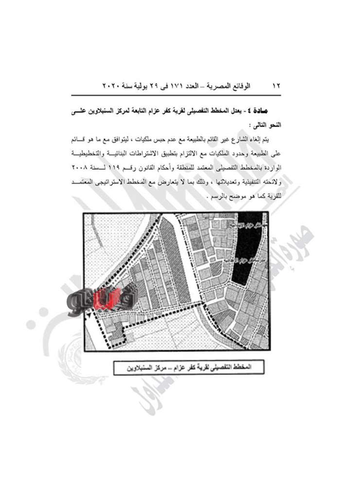 وينص القرار في مادته الأولى على تعديل المخطط التفصيلي لقرى نوب طريف وقرية طنبول الكبرى وقرية كفر غنام وقرية كفر عزام وقرية طوخ الأقلام التابعين لمركز السنبلاوين.