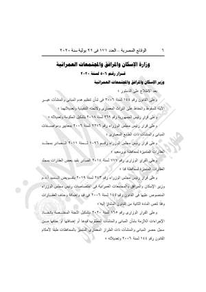 وقرار وزارة الإسان والمرافق والمجتمعات العمرانية رقم 29 يوليو 2020، بشأن حذف عقارين من سجل المنشآت ذات الطراز المعمارى المميز لمحافظة بورسعيد، وعقار سجل المنشآت ذات الطراز المعمارى المميز لمحافظة قنا.