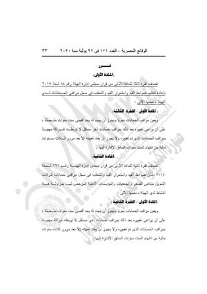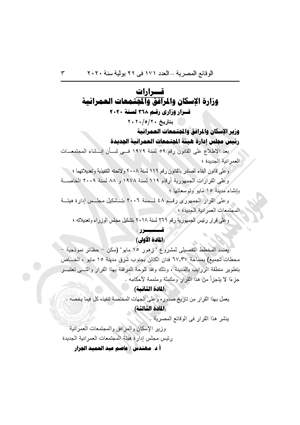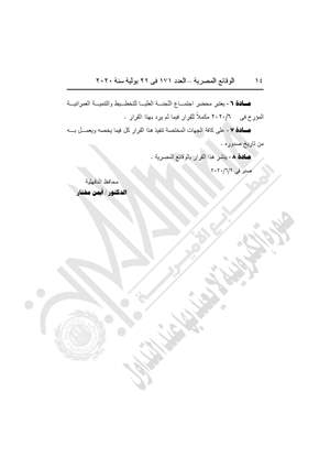 أبرز قرارات جريدة "الوقائع المصرية" في عددها 171 اليوم