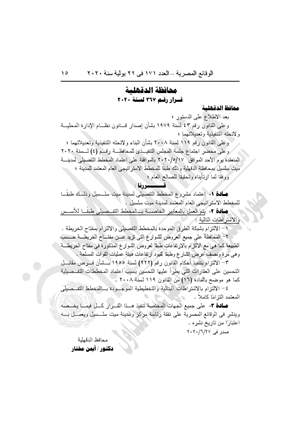 وقرار محافظة الدقهلية رقم 340 لسنة 2020، بتعديل المخطط التفصيلي لـ5 قرى تابعين لمركز السنبلاوين.