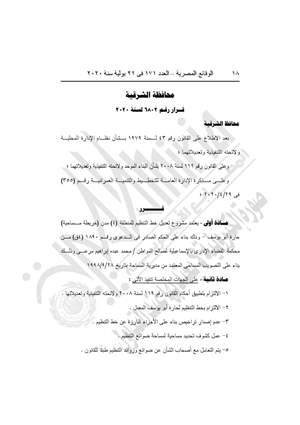 وقرار محافظة الشرقية رقم 6802 لسنة 2020، باعتماد مشروع تعديل خط التنظيم للمنطقة (4) مدنخريطة مساحية حارة أبو يوسف، بناء على الحكم الصادر في الدعوى رقم 1890 من محكمة القضاء الإدارى بالاسماعيلية.