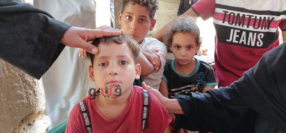 وبجانب الجدة يجلس طفل لا يتعدى عمره الثلاثة اعوام به آثار عمليات بإحدى عينيه، ينظر إلى الجميع لكنه غير مدرك عما يحدث حوله، وبجواره شقيقه الأكبر الذي بادر بالحديث معنا وقال: "أخويا بيشوف بعين واحدة بسبب حقنة خطأ ووالدي أجرى له 4 عمليات وكلفته الكثير ولا يزال ينتظر عمليات اخرى .. بس أبويا مات" لينخرط في البكاء هو والجدة وأشقاؤه.