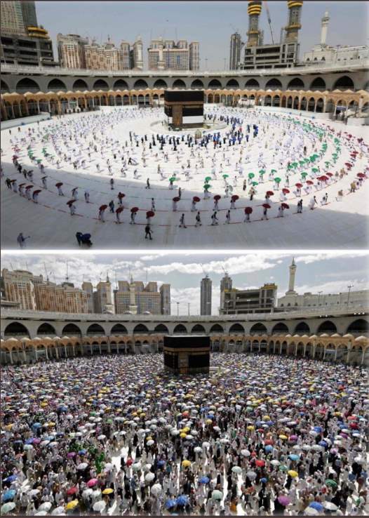 أعداد قليلة لا تزيد عن الـ10 آلاف حاج في ساحة كانت تكتظ بعدد الحجاج الذين كان أعدادهم تناهز الـ2 مليون حاج، أنه الحج في زمن الكورونا، تباعد وكمامات ودموع تذرف من العيون على قلة أعداد الحجيج هذا العام.