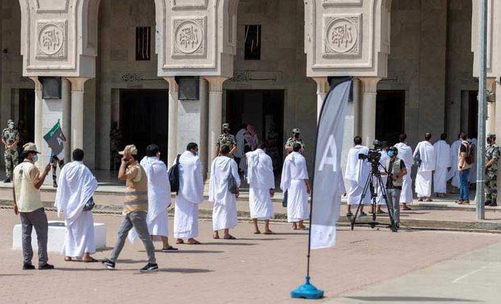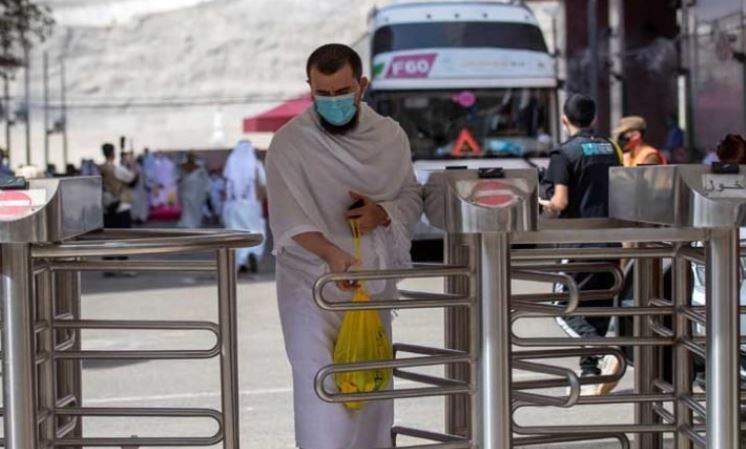وبدأ الحجاج بالوصول وهم يرتدون الكمامات