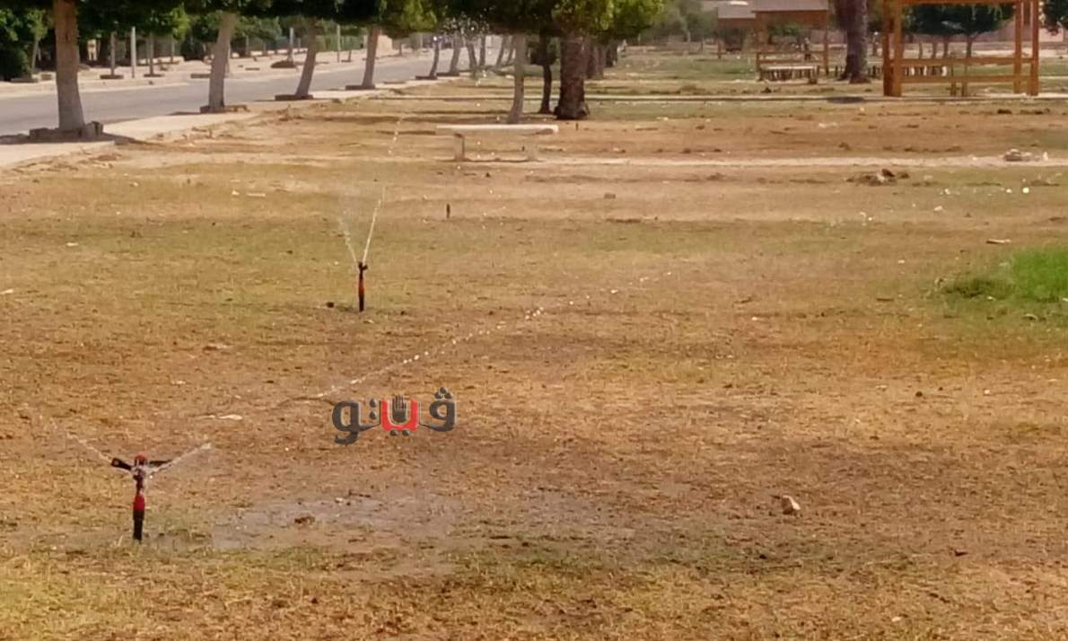 كما تابع أعمال إغراق المتنزهات والمسطحات الخضراء بالمياه لمنع التجمعات ، أو الجلوس والتواجد عليها واستكمال أعمال مد المتنزة أمام المجمع بالرشاشات للري المحوري .