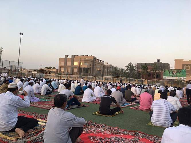 أدى آلاف الكويتيين صلاة عيد الأضحى اليوم في الساحات بمصلى ساحة الجهراء الرياضية.