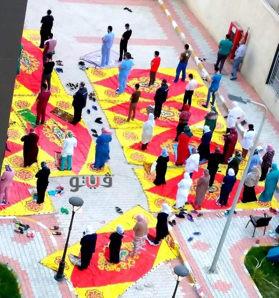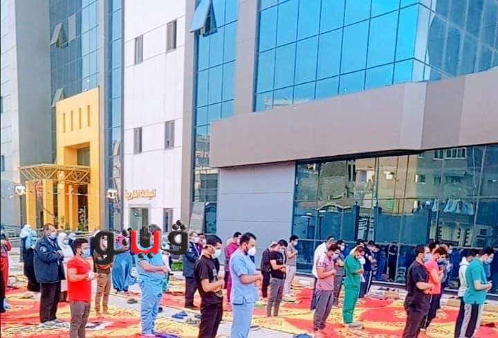 الطاقم الطبي بمستشفى العجمي للحجر الصحي يؤدي صلاة عيد الفطر | صور