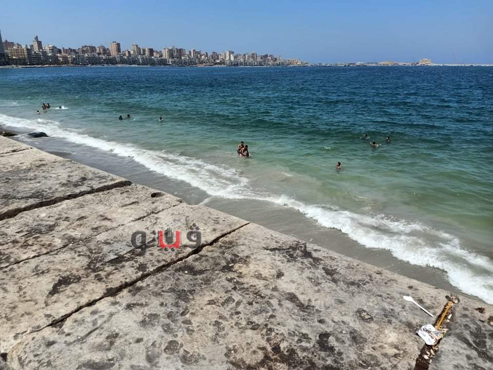 تسلل عدد من الشباب إلى مياه البحر رغم غلق الشواطئ بالإسكندرية | صور