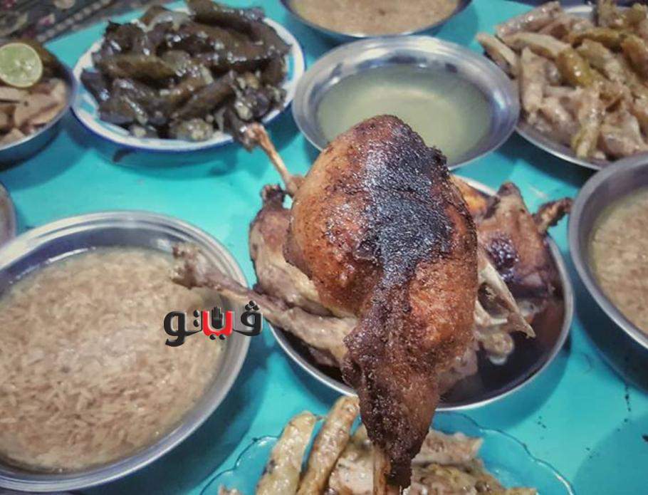 موائد المنادر والبيوت المختلفة كطقس في اول ايام عيد الأضحى المبارك مع لحم