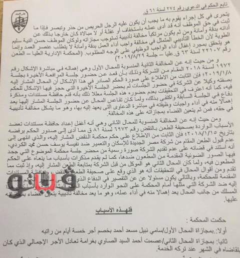 المحكمة حكمها بحضور المستشار فوزي عبد الهادي، ممثل النيابة الإدارية، بخصم أجر
