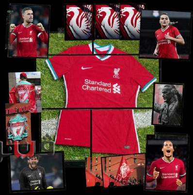 وذكر الموقع الرسمي لنادي ليفربول، أن القميص الأساسي للريدز، سيأتي باللون الأحمر الخالص مع وجود خطوط باللونين الأبيض والسماوي.