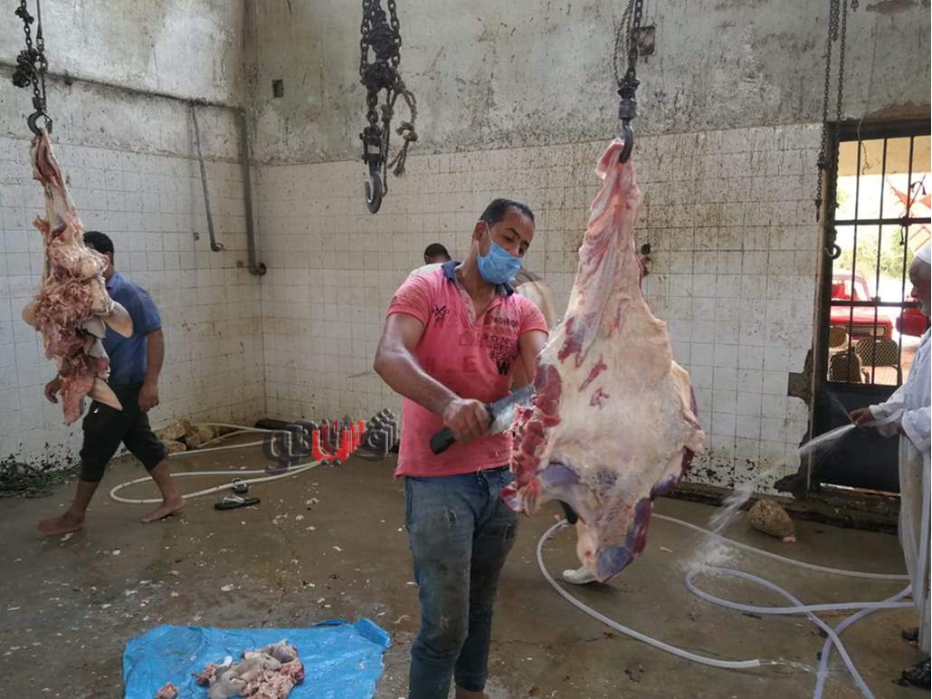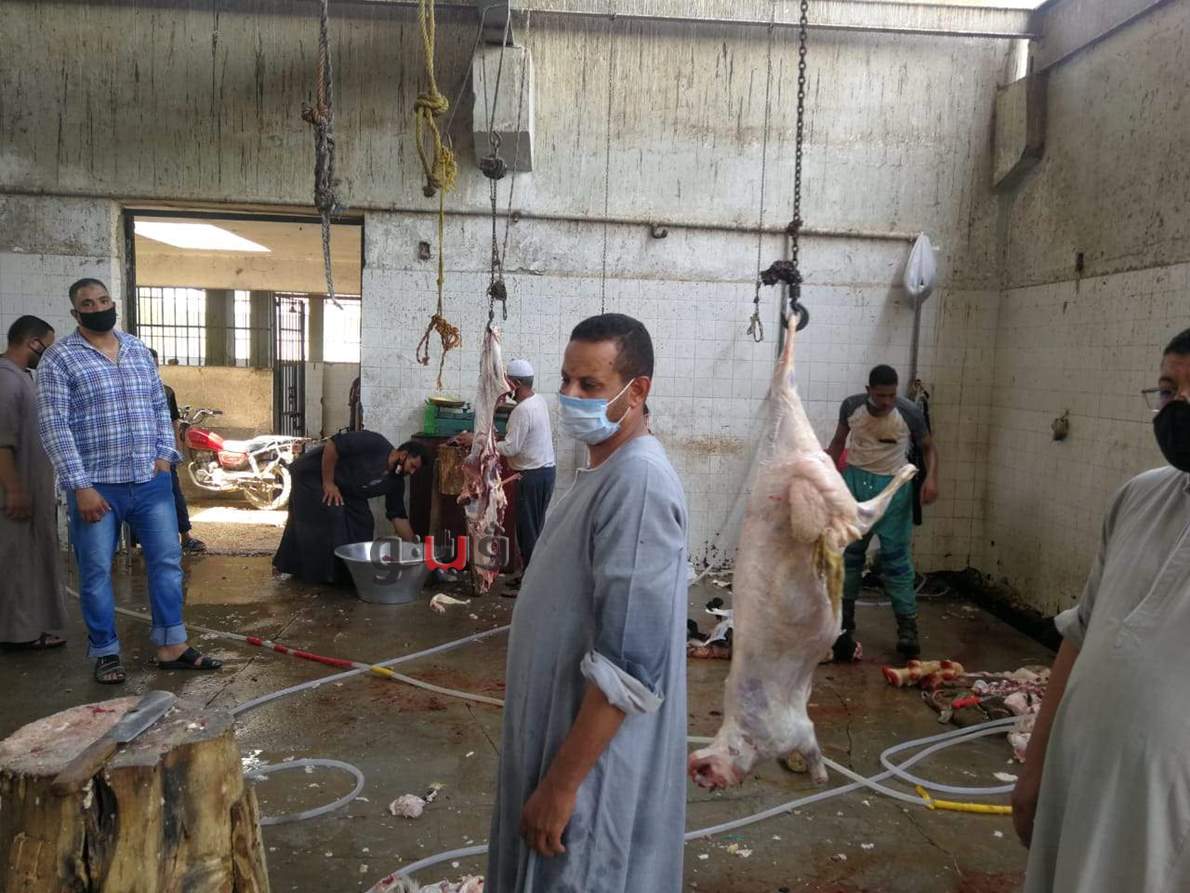 وقد ارتدى العاملون بالمجازر الكمامات ودخول المواطنين بانتظام دون تزاحم مع الحفاظ علي المسافة الآمنة بينهم طبقا للإجراءات الوقائية التي تتبعها الدولة.