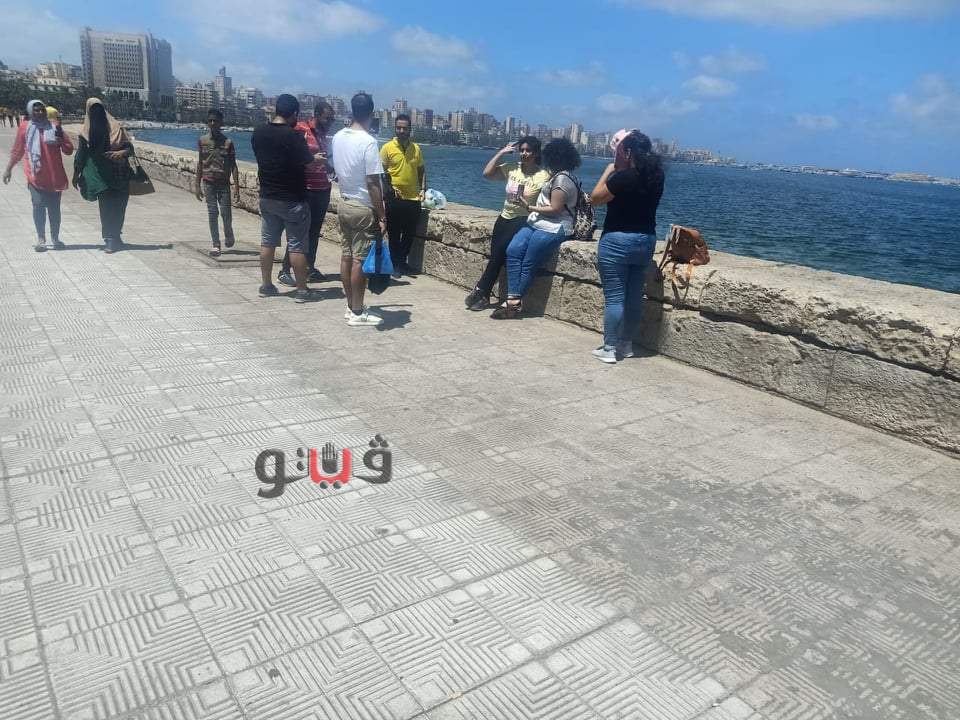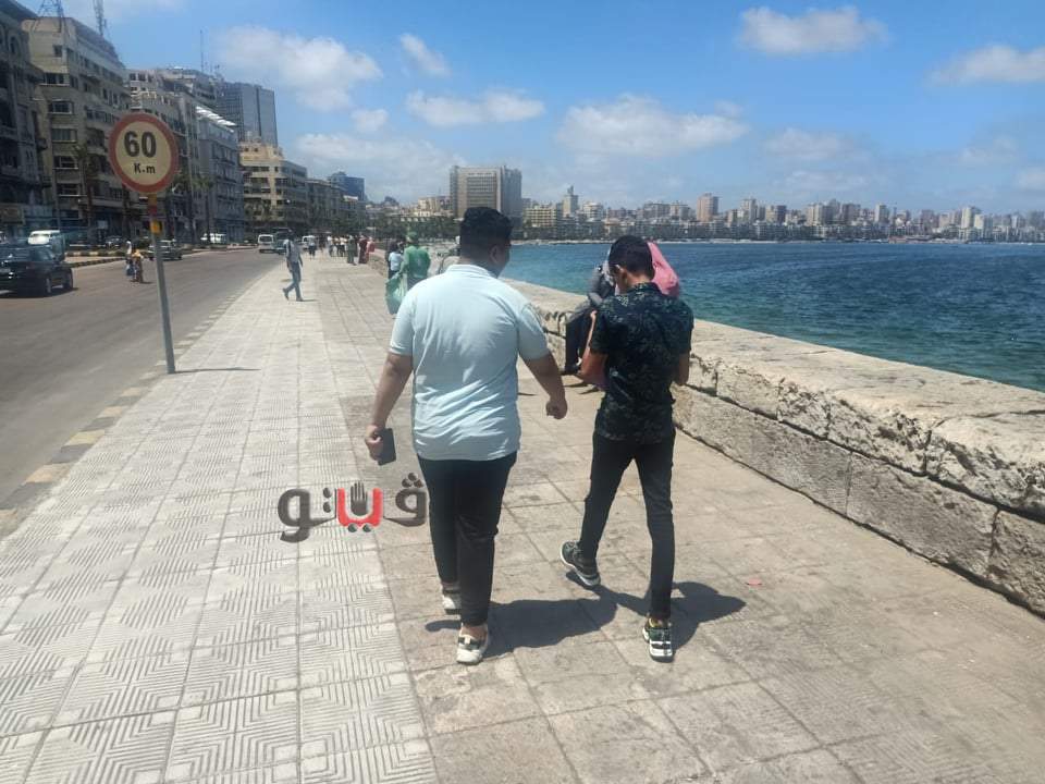 توافد المواطنين على كورنيش البحر بالإسكندرية بثاني أيام عيد الأضحى