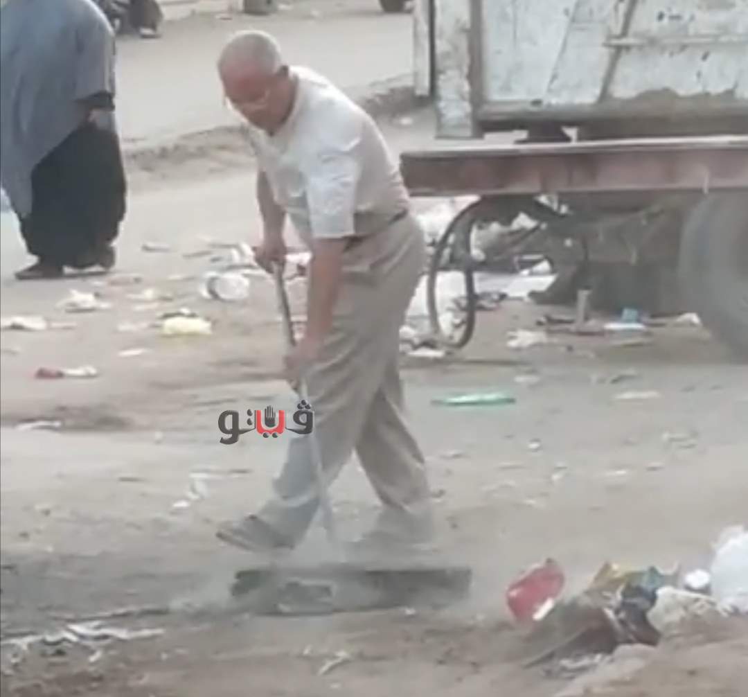 رئيس حى بملوي يجمع القمامة وينظف الشارع | فيديو وصور