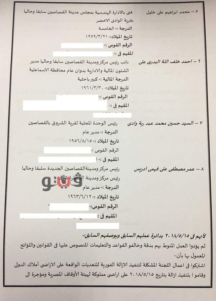 بالأسماء والمستندات.. إحالة 8 مسئولين بمحافظة الإسماعيلية للمحاكمة