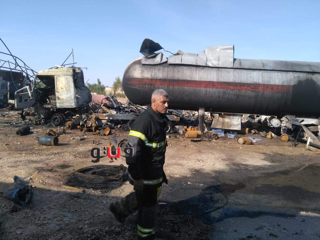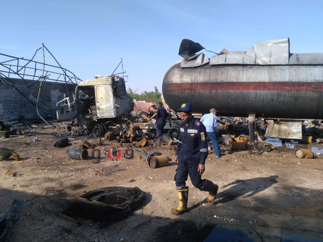 3 مصابين وخسائر مادية جسيمة في انفجار سيارة غاز بقنا | صور