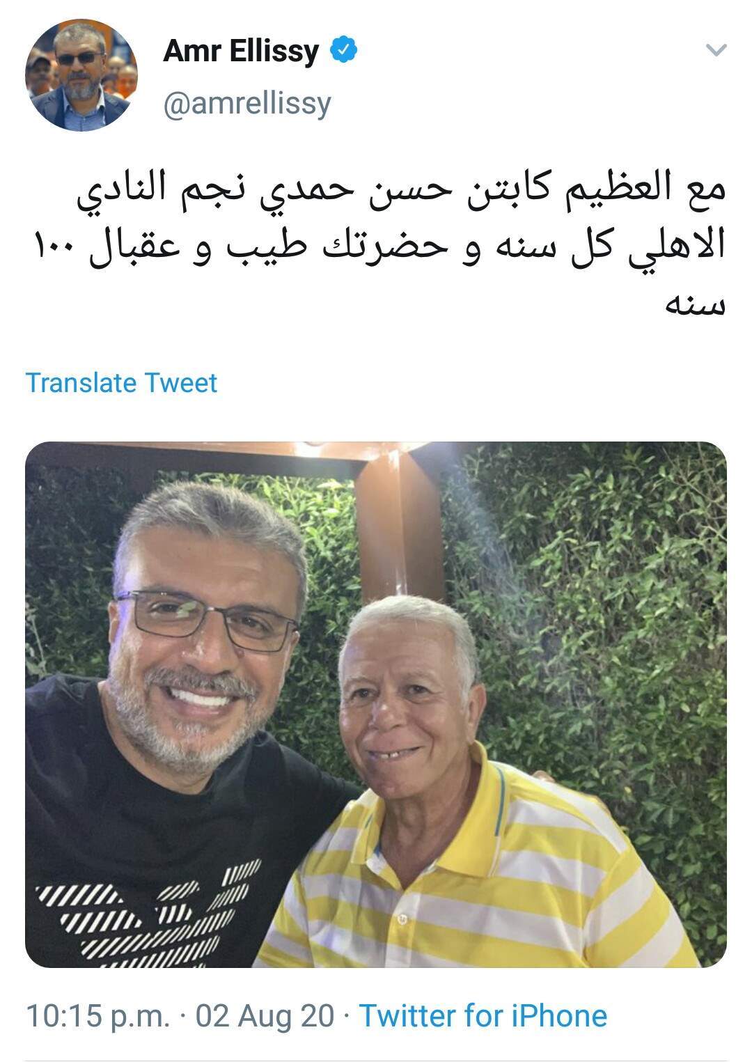 ونشر عمرو الليثي صورة تجمعه بحسن حمدي معلقا عليها: "مع العظيم كابتن حسن حمدي نجم النادي الاهلي كل سنه و حضرتك طيب و عقبال ١٠٠ سنه".