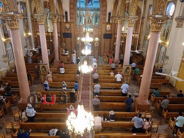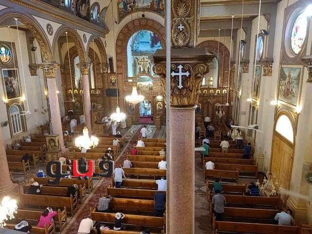 وسط إجراءات احترازية شهدتها جميع الكنائس بالمحافظة، ومنها التباعد الاجتماعى وارتداء