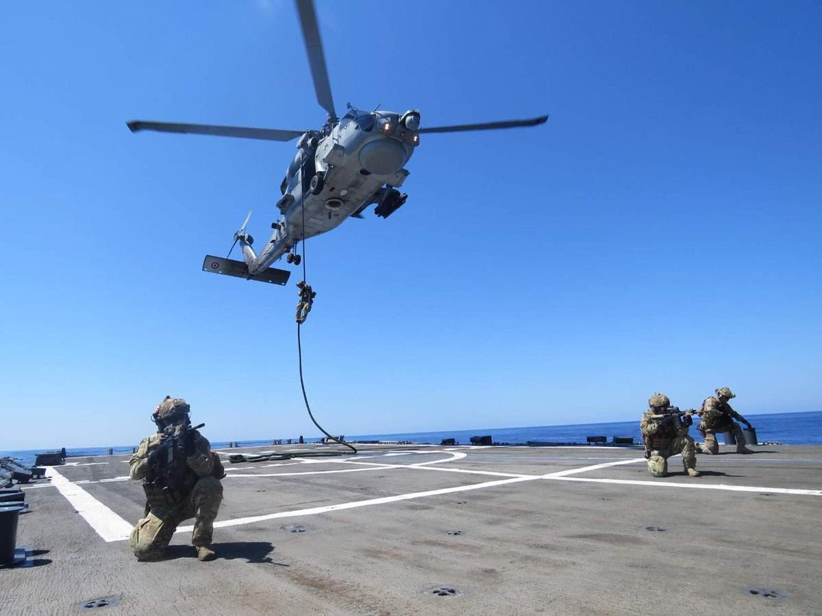 وذكرت الوزارة أن التدريبات جرت في الفترة بين 26 و30 يوليو، وشاركت فيها الفرقاطات العاملة في المتوسط والمروحيات المتمركزة على متنها وقوات برمائية خاصة للتدخل السريع.