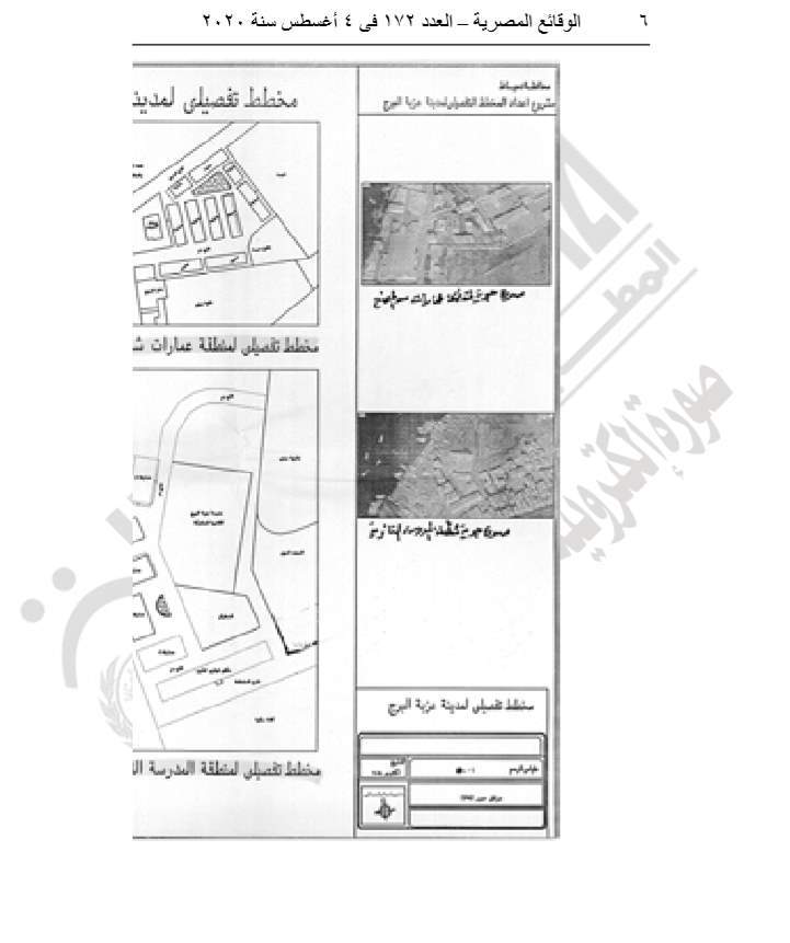 وينص القرار في مادته الأولى على اعتماد المخطط التفصيلي لمنطقتي عمارات شارع المصنع (سكني- اقتصادي) وعمارات شارع المدرسة الثانوية والمطلة على نهر النيل (سكني- تجاري- إداري) بمدينة عزبة البرج وفقًا للاشتراطات البنائية والتخطيطية الواردة بالمخطط الاستراتيجي العام المعتمد لمدينة عزبة البرج.