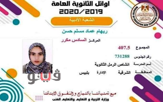 هنأ الدكتور ممدوح غراب محافظ الشرقية، الطالبة ريهام عماد مسلم حسن ابنة قرية أنشاص الرمل التابعة لرئاسة مركز ومدينة بلبيس.