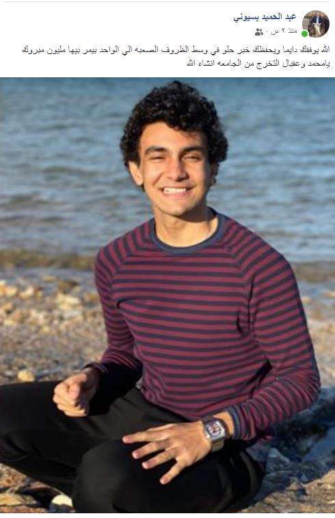 وفور علمه بالخبر نشر بسيوني عبر حسابه الشخصي بموقع التواصل الاجتماعي فيس بوك:"الله يوفقك دايما ويحفظك خبر حلو في وسط الظروف الصعبة الي الواحد بيمر بيها مليون مبروك يا محمد وعقبال التخرج من الجامعة إن شاء الله.