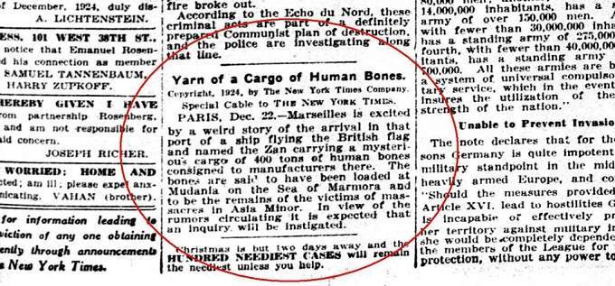 تمنعها من شراء عظام اليونانيين والأرمن القتلى، من أجل تحويلها إلى الاستخدامات