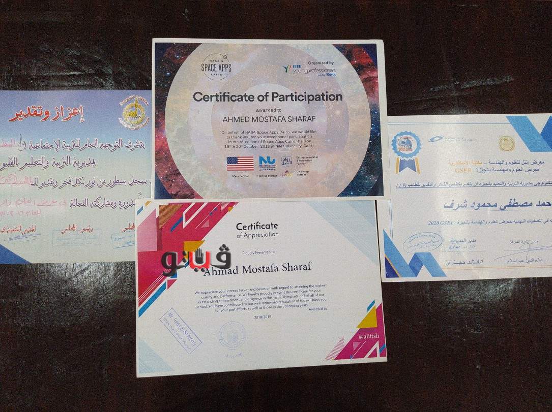 وأضاف:" كل واحد فينا يقوم بتنمية مهاراته في الكتابة وانشطة الأولمبياد الرياضيات ومسابقات وأشياء أخري تتعلق بالكمبيوتر سينس وذلك لافادتي عند التقديم بالجامعات الاجنبية بتوضح التجارب والخبرات “.
