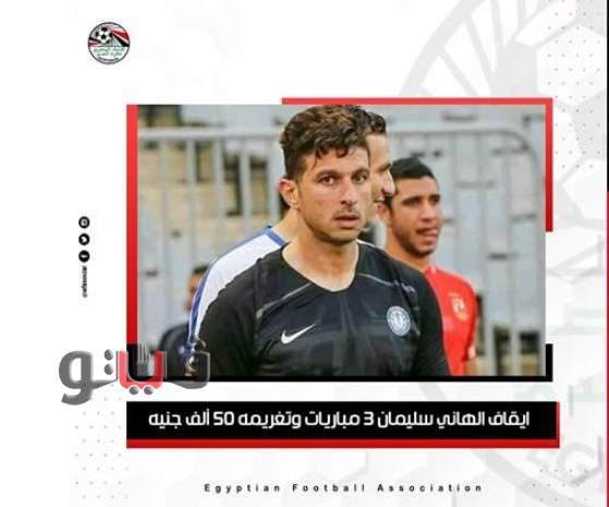 قررت لجنة الانضباط والأخلاق بالاتحاد المصري لكرة القدم، إيقاف الهاني سليمان حارس مرمى فريق سموحة لثلاث مباريات، وتغريمه 50 ألف جنيه تسدد لحساب الاتحاد المصري لكرة القدم في مدة أقصاها 30 يوما من تاريخ الإخطار.