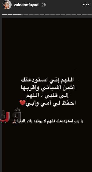 فياض التي تربت بعيدًا عن أمها، ولا يوجد تواصل بينهما، كتبت عبر ستوري إنستجرام الخاص بها: "اللهم إني استودعتك أثمن أشيائي، وأقربها إلى قلبي، اللهم احفظ لي أمي وأبي، يا رب استودعتك قلبهم لا يؤذيه بلاء الدنيا".