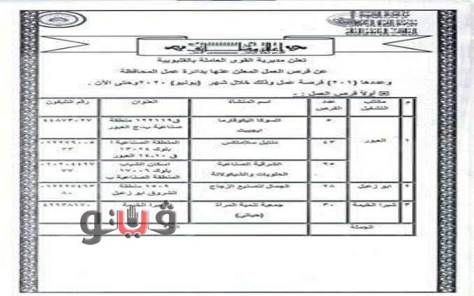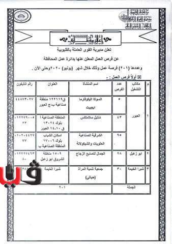 تبدأ مديرية القوى العاملة بالقليوبية اعتبارا من غدا الخميس قبول طلبات راغبي العمل على 201 فرصة عمل في 6 مؤسسات وذلك حتى استيفاء العدد المطلوب، برواتب تتراوح بين 1600 إلى 2500 جنيه، فضلا عن عمولات ونسب وبدلات.