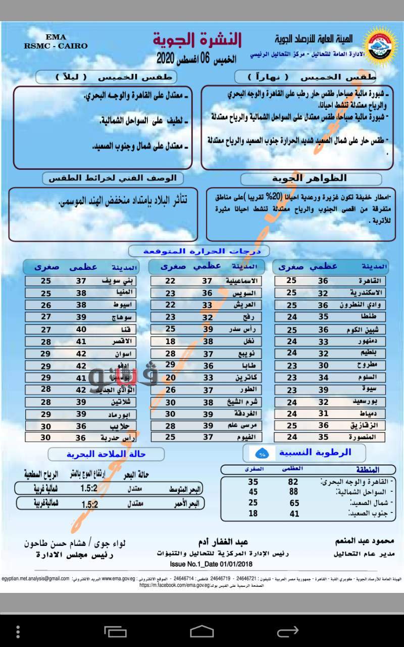 وفيما يلى بيان بدرجات الحرارة المتوقعة اليوم على مدن ومحافظات مصر..