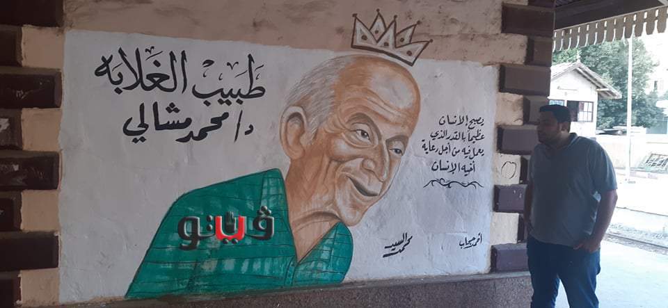أبدع شابان في رسم جرافيتي معبر للدكتور الراحل محمد مشالي والملقب بطبيب الغلابة علي سور محطة قطار أبو زعبل التابعة لمدينة الخانكة بمحافظة القليوبية واضعين أعلاها تاجا ومدون بجوارها عبارة "يصبح الإنسان عظيما بالقدر الذي يعمل فيه من أجل رعاية أخيه الإنسان ".