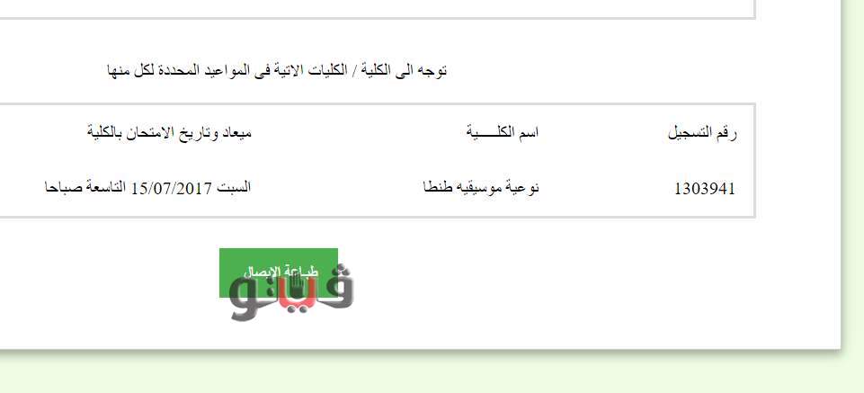 7- بعد انتهاء التسجيل يقوم الطالب بطباعة إيصال يشمل أنواع القدرات التي أبدى الرغبة في أدائها والمواعيد وأماكن أداء هذه الاختبارات بالكليات التي قام الطالب بتسجيلها على موقع التنسيق الإلكتروني.