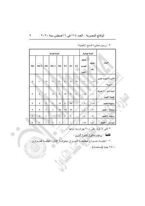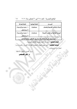 وينص القرار في مادته الأولى على أن تعديل رسوم مصلحة دمغ المصوغات والموازين لتكون رسوم الكيل والموازين: