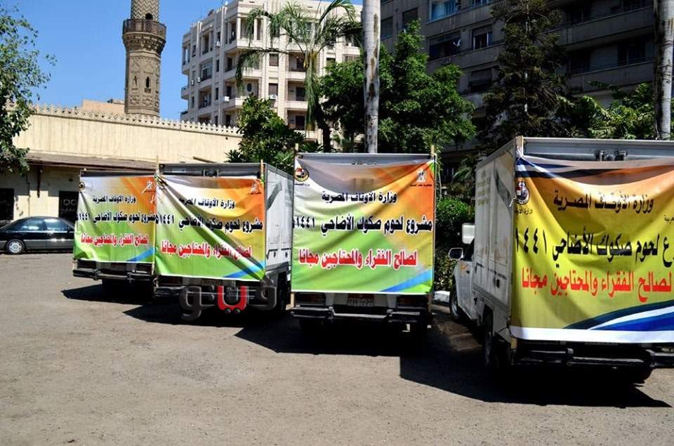 انطلاق سيارات توزيع لحوم أضاحي الأوقاف للمديريات | صور