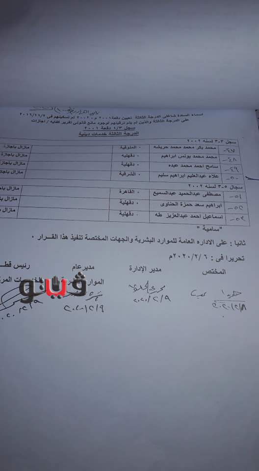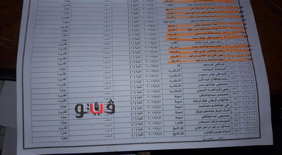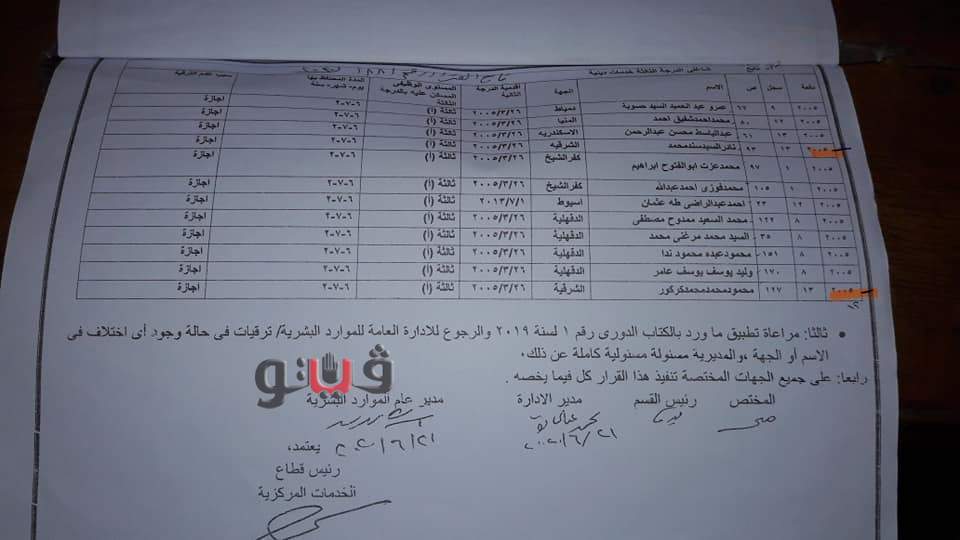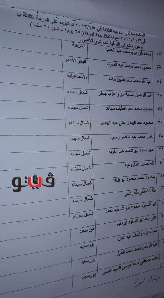 وحصلت "فيتو" على كشوف الأسماء التي يحق لها الترقيات، وجاءت كالتالي: