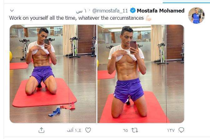 قائلًا: "اشتغل على نفسك طوال الوقت، مهما كانت الظروف".وظهر مصطفى محمد مهاجم الزمالك والمنتخب الأولمبي، بأداء باهت خلال مواجهة فريقه مع المصري البورسعيدي، والتي انتهت بفوز الأبيض بهدف وحيد سجله محمود علاء، حيث أهدر المهاجم الشاب أكثر من فرصة، مع عودة الدوري الممتاز بعد توقف دام لأكثر من 4 أشهر.