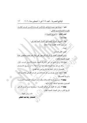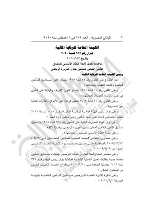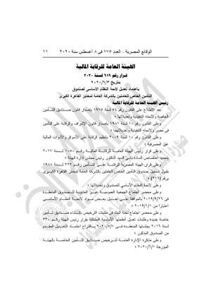 نشرت جريدة الوقائع المصرية في عددها رقم 175، الصادر في 8 أغسطس 2020، قرارا الهيئة العامة للرقابة المالية بشأن تعديل لائحة النظام الأساسي لصندوق التأمين الخاص للعاملين بنادي الجزيرة والشركة العامة لمخابز القاهرة الكبرى.