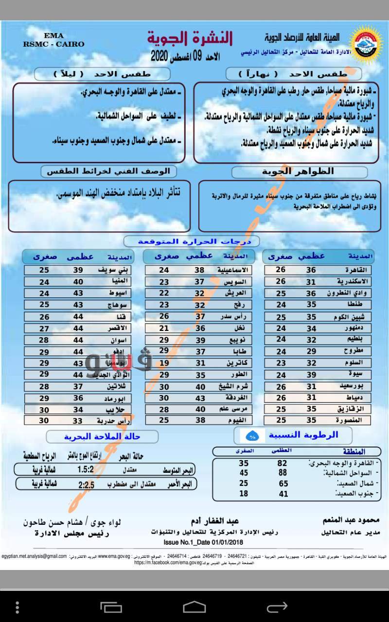 وفيما يلى بيان بدرجات الحرارة: