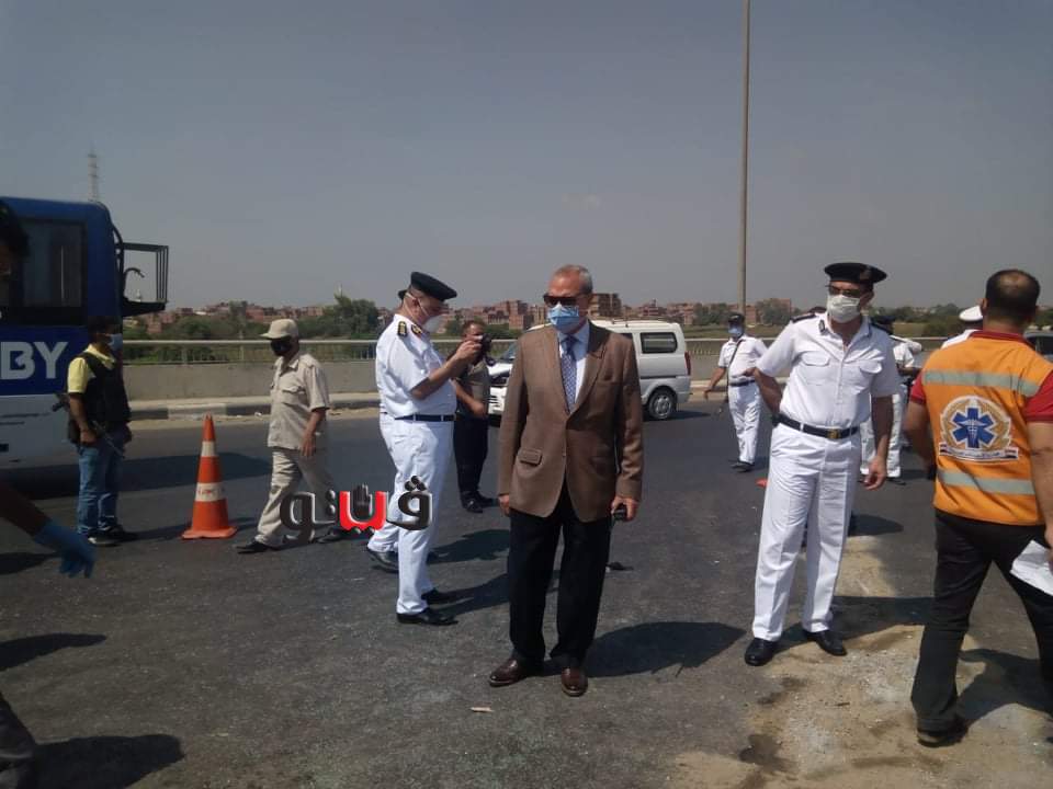 من ناحية أخرى انتقل فريق من نيابة القليوبية، لمعاينة حادث التصادم الذى وقع صباح اليوم الأحد نتيجة تصادم سيارة ميكروباص بأخرى "نقل" من الخلف.