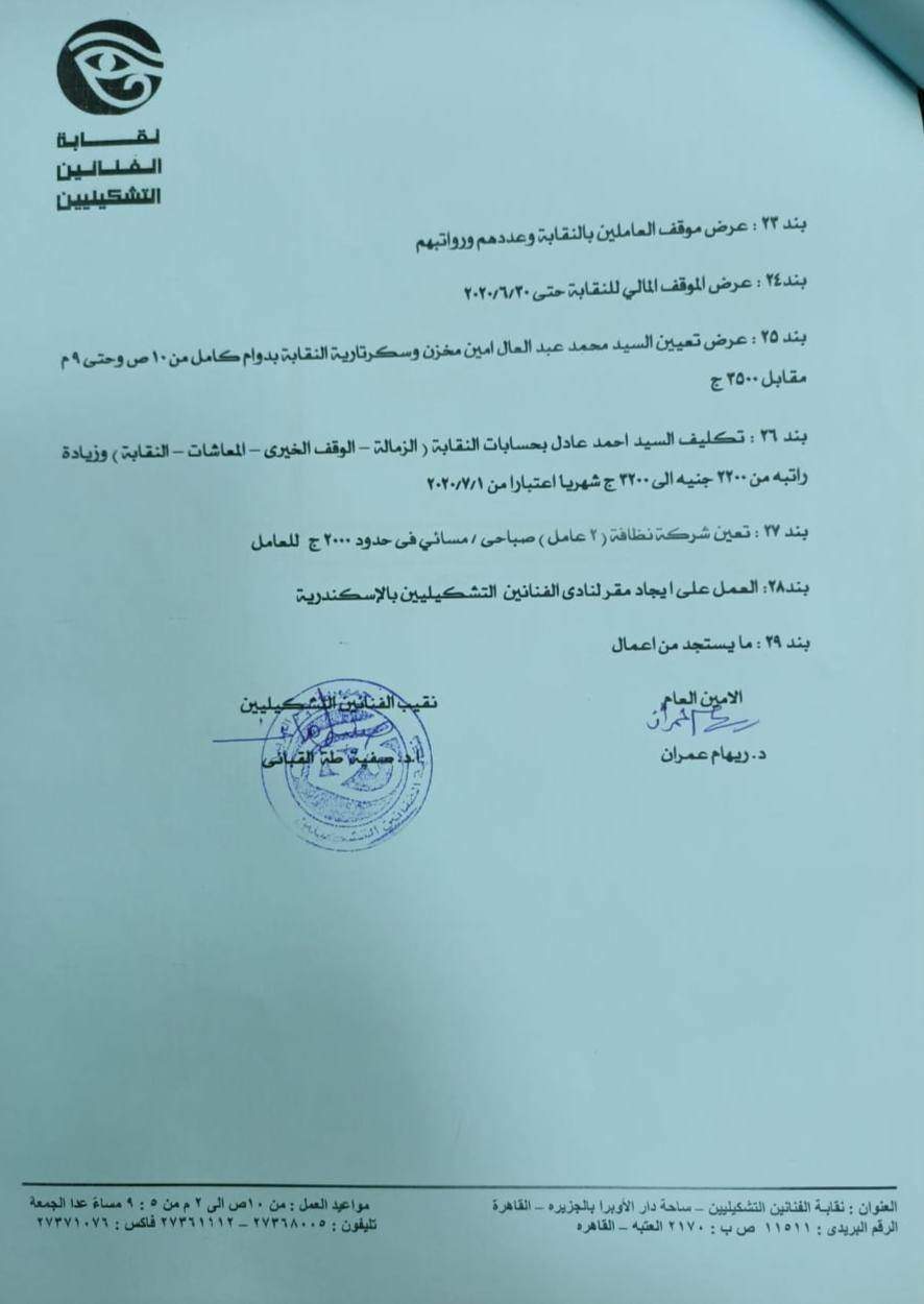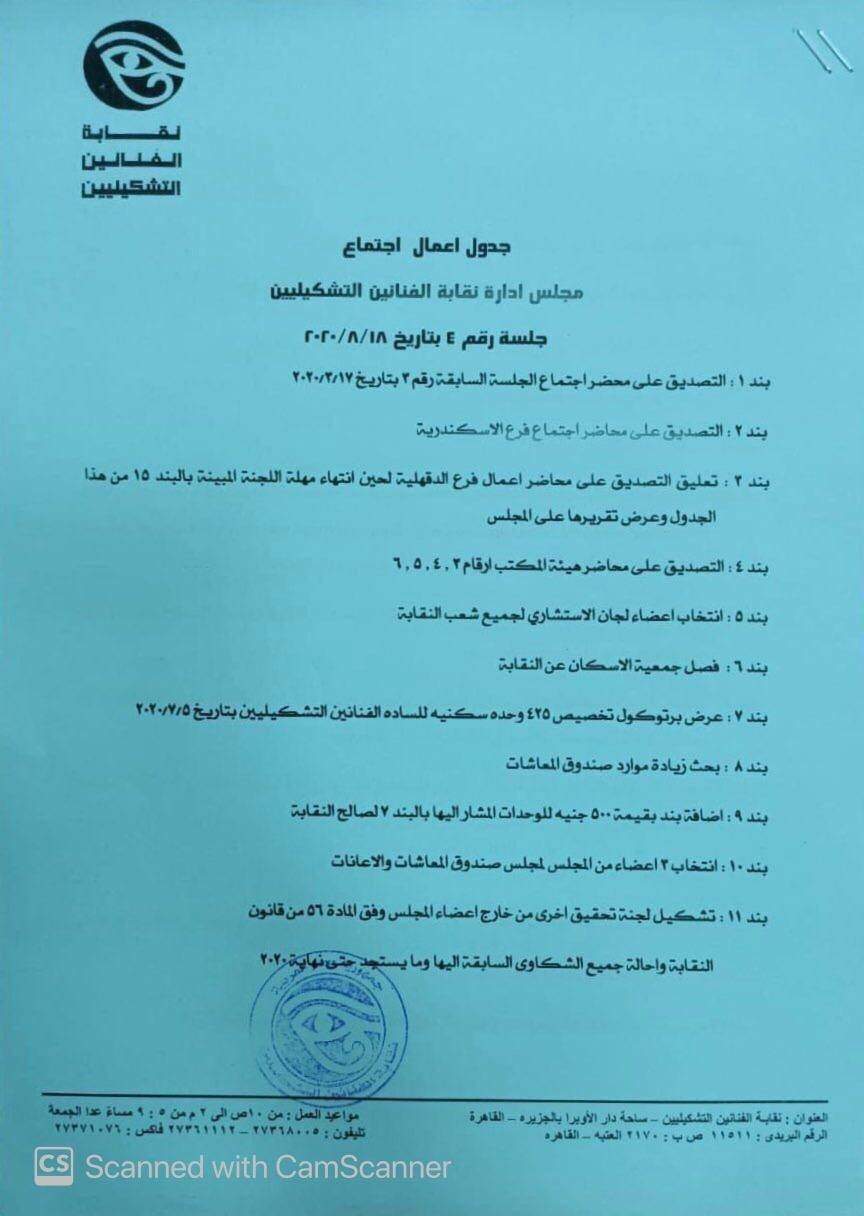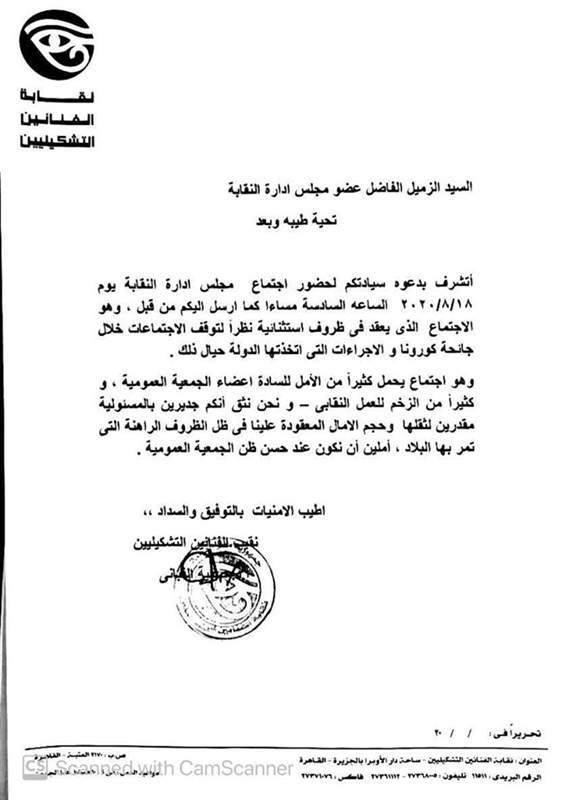 أعلنت نقابة الفنانين التشكيليين برئاسة الدكتورة صفية القباني، عقد اجتماع يوم الثلاثاء الموافق 18 أغسطس الجاري، وذلك بعد توقف استمر قرابة الـ 3 أشهر بسبب انتشار فيروس كورونا المستجد.