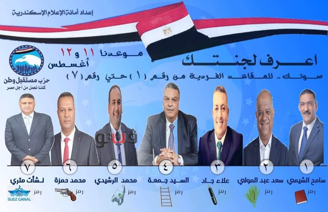 فيما أعد تحالف حزب مستقبل وطن المكون من ١١ حزب، خطة للمنافسة على ٧ المقاعد الفردية مع القائمة بإعلان مرشحين التحالف الـ٧ وهم سامح الشيمي، نشأت متري، سعد الفقي، محمد الرشيدي، علاء جاد، محمد حمزة، سيد جمعة، وسط تحركات جماعية الفردي والقائمة والحشد على أرض الواقع لهم.