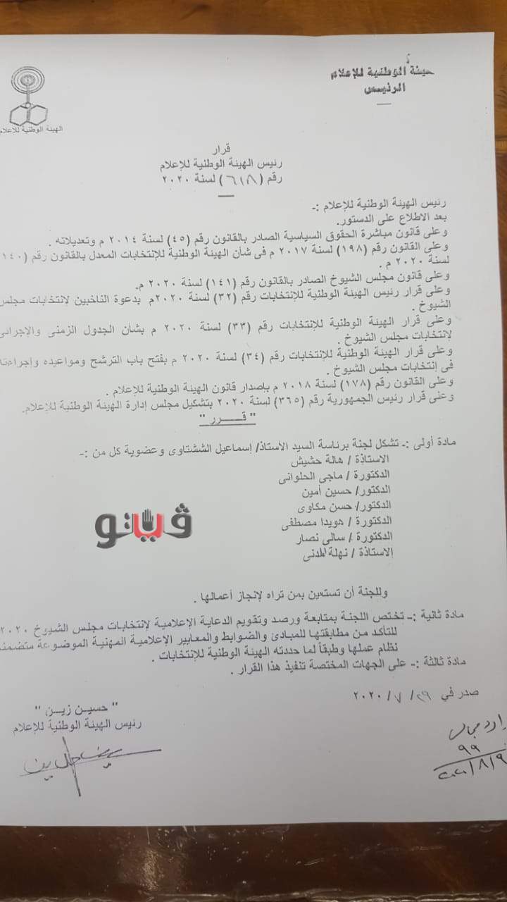 ورصدت اخبار ماسبيرو إصدار زين القرار 618 لسنة 2020 بتشكيل لجنة برئاسة إسماعيل الششتاوي وعض ية كل من هالة حشيش والدكاترة ماجى الحلوانى وحسن امين وحسن مكاوي وهويدا مصطفى وسالي نصار ونهلة مدني من قطاع الأخبار واتاح القرار حرية استعانة اللجنة بمن تراه لإنجاز عملها.