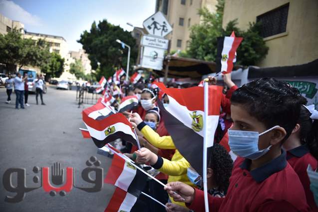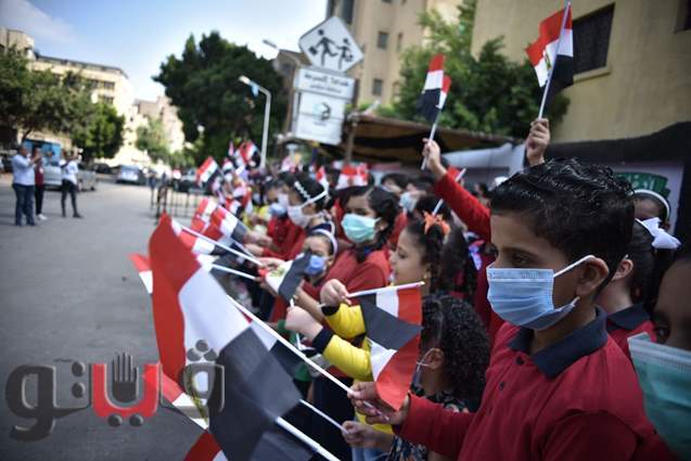 أطفال الدقي يرفعون أعلام مصر لتشجيع المواطنين على المشاركة في انتخابات الشيوخ | صور