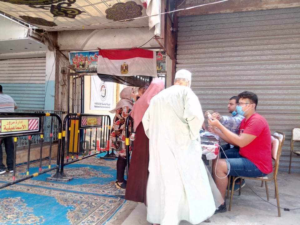 بالصور.. متطوعون يوزعون الكمامات على الناخبين بالإسماعيلية