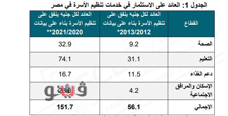 اكدت دراسة صادرة عن المركز المصرى للدراسات الاقتصادية ضمن سلسلة "رأى فى ازمة" حول تأثير الجانحة على الزيادة السكانية فى مصر، أنه بالاخذ في الاعتبار التطورات الاقتصادية التي شهدتها مصر منذ ٢٠١٣، وأهمها تعويم الجنيه المصري أن كل 1 جنيه ينفق على أغراض تنظيم الأسرة يحقق وفرا إجماليا قدره 151.7 جنيه، لأن الدولة ستتجنب إنجاب حوالى 43.3 مليون مواطن خلال الفترة من (2015- 2045).