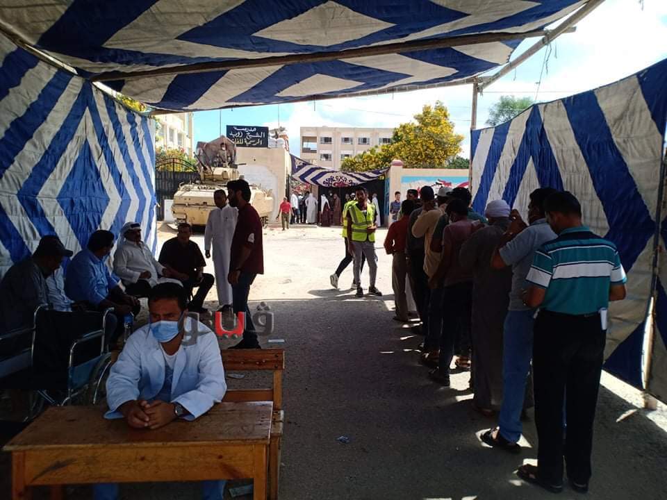 واصطف الناخبين فى طوابير امام لجان انتخابات مجلس الشيوخ بمدينة الشيخ زويد للأدلاء بأصواتهم وسط، اجراءات امنية مشددة.